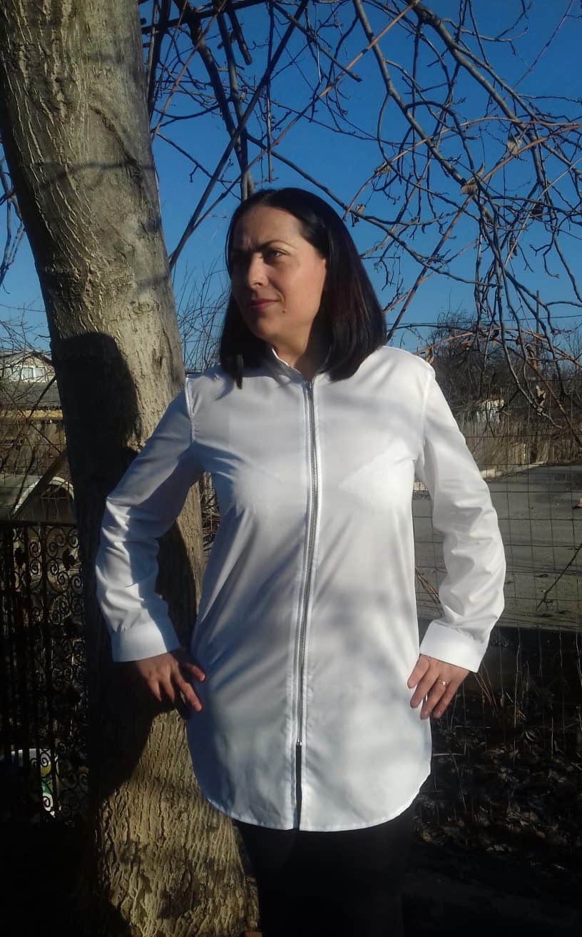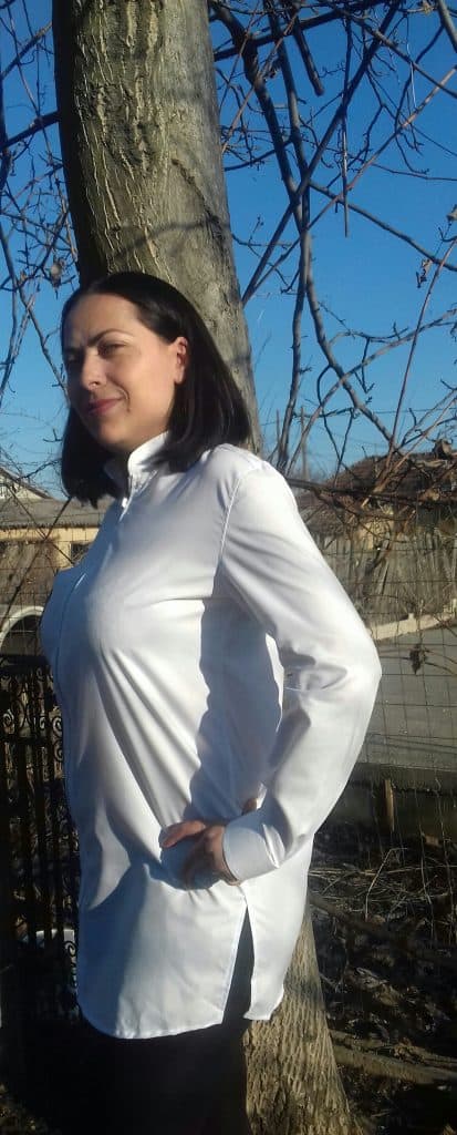 Experienta purtarii acestei camasi e una inedita: e prima camasa lunga pe care am avut-o vreodata in garderoba. Desi sunt un Varsator revolutionar in alte privinte, marturisesc ca in privinta garderobei sunt destul de conservatoare. Dar stil conservator nu inseamna neaparat anost. De aceea am ales o camasa alba, lunga, dupa cum va spuneam, care are inchidere cu fermoar si guler stil tunica.