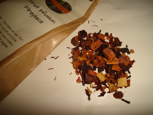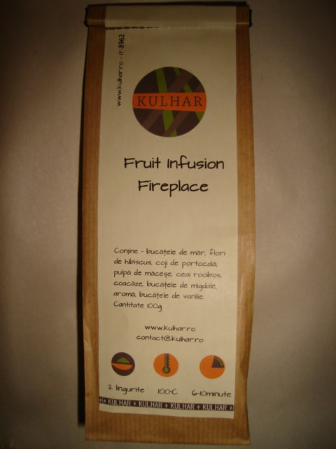 • Fruit Infusion Fireplace (bucăţele de măr, flori de hibiscus, coji de portocală, pulpă de măceşe, ceai rooibos, coacăze, bucăţele de migdale, aromă, bucăţele de vanilie).