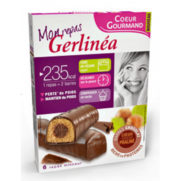 Gerlinea Batoane dietetice cu ciocolata si inima de pralina, substitut de masa pentru controlul greutatii, 372g (12 x 31g).