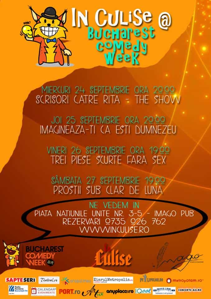 Atunci când vine vorba de hohote de râs, spectacolele În Culise sunt nelipsite! Ne vedem cu bucurie și comedie să celebrăm RÂSUL prin teatru: la final de Septembrie, pe 24, 25, 26 și 27 Septembrie, în Piața Națiunile Unite nr. 3-5. Urmăriți programul de mai jos: