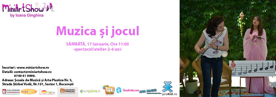 11:00 – „Muzica si jocul” – spectacol/atelier creativ 2-6 ani
