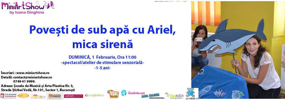 11:00 – „Povesti de sub apa cu Ariel, mica sirena” – spectacol/atelier senzorial si creativ – 1-5 ani