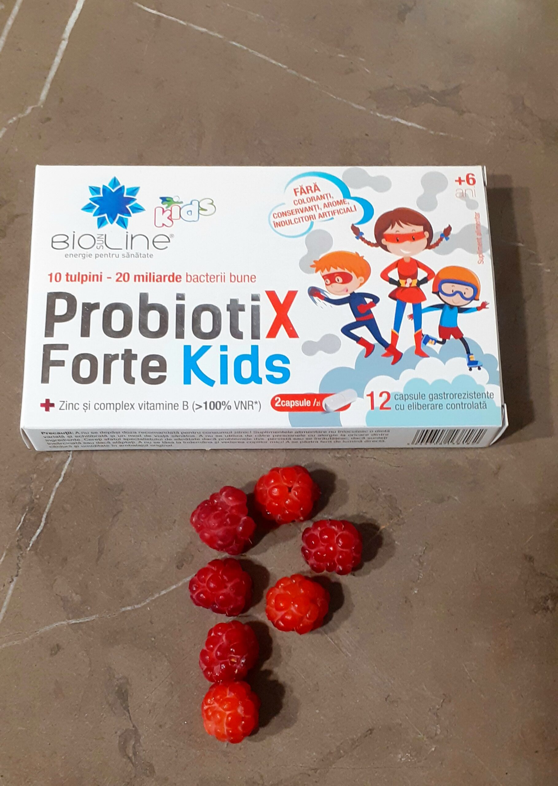 Suntem tare norocosi sa avem mereu fructe proaspete din gradina noastra! Dar, uneori, mai apar si probleme la burtici de pitici… Nicio problema, avem aliat de nadejde: Probiotix Forte Kids. Acesta ajuta la refacerea florei intestinale si in timpul si dupa un tratament cu antibiotice, dar sper sa nu fie cazul.